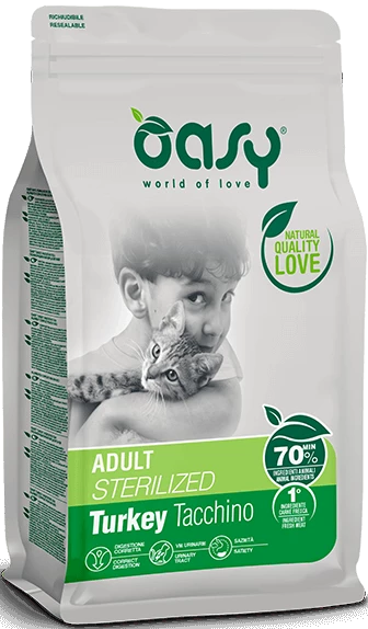 Cechy suchej karmy OASY Adult Sterilized Turke Tacchinoy: