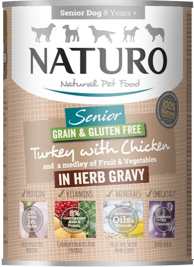 Cechy karmy NATURO Senior Dog Turkey with Chicken and Fruit & Vegetables in a Herb Gravy: |