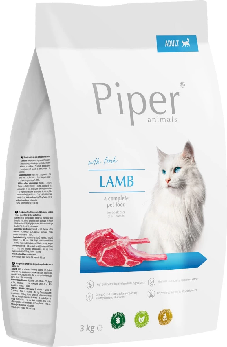 - Piper ze Świeżym Mięsem z JAGNIĘCINY to karma sucha przeznaczona dla dorosłych kotów
