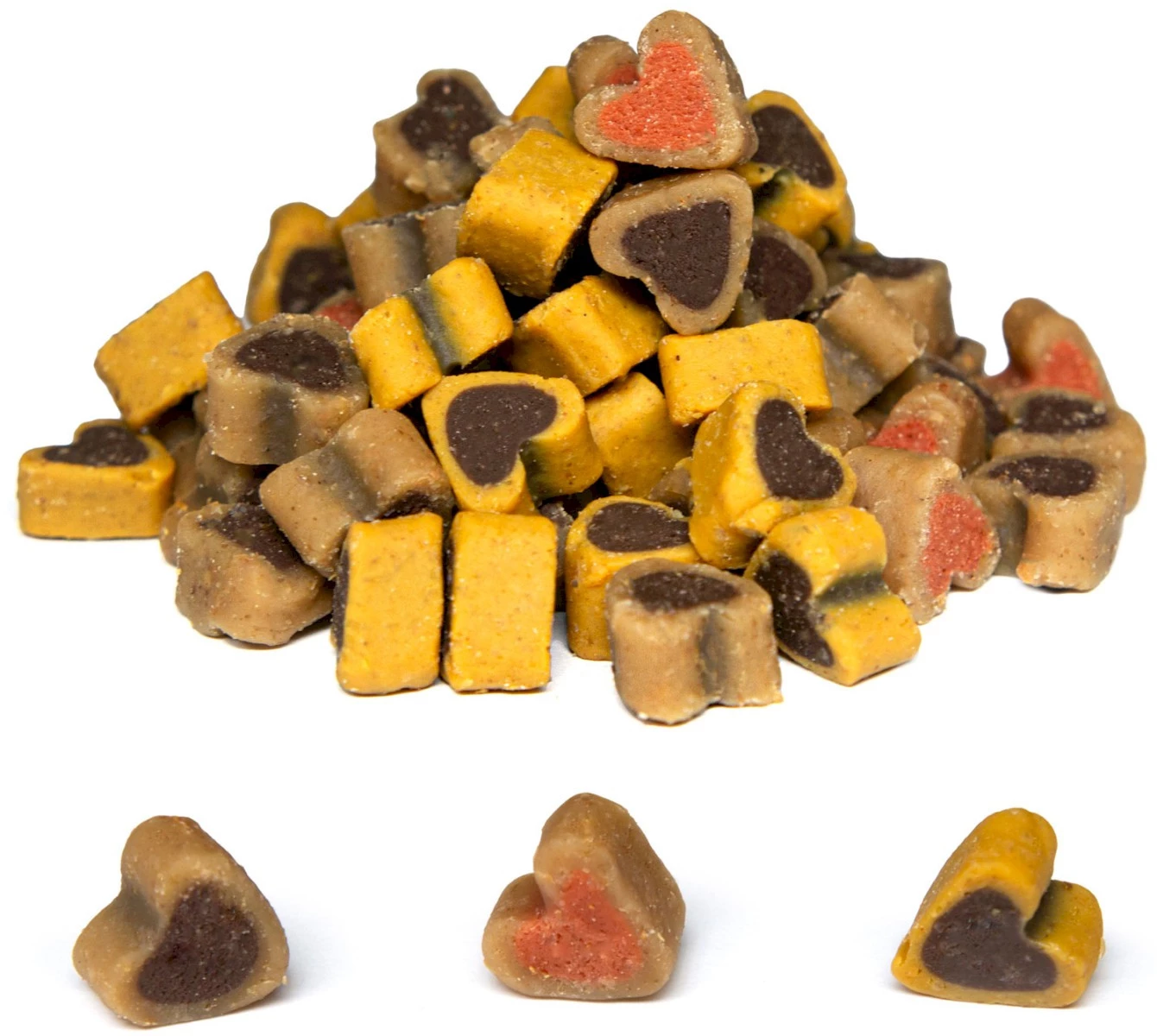 - Miękkie, drobne serduszk mięsne o strukturze idealnej do treningów.