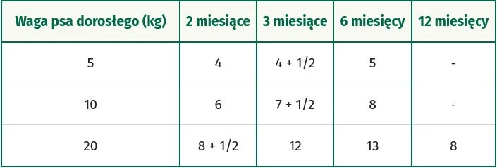 - Zalecana dzienna porcja może się różnić w zależności od stopnia aktywności zwierzęcia.