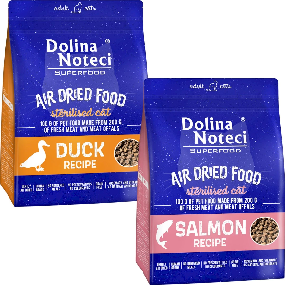 - Karma Dolina Noteci SUPERFOOD danie z łososia jest karmą bytową dla kotów sterylizowanych i poza tym, że pokrywa ich specyficzne potrzeby żywieniowe, jest jednocześnie bardzo smakowitą, lekkostrawną i wyjątkowo odżywczą.