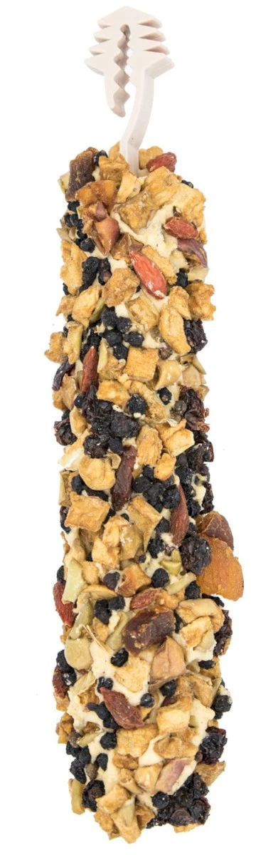 mączka z lucerny, mąka grochowa, jabłko suszone (26,5%), morela suszona (8%), czarny bez suszony (5,5%), porzeczka suszona (5%), jagody goji suszone (2,5%), żurawina (2,5%).