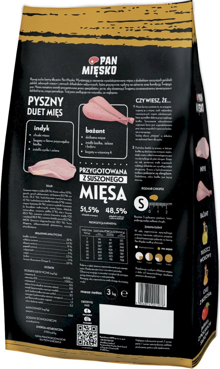 Pan Mięsko Indyk z bażantem S - sucha karma dla psa - 3kg