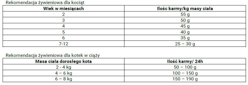 - Dla kotek w ciąży: należy pamiętać, że zapotrzebowanie na pokarm w czasie ciąży zależy od liczby kociąt.