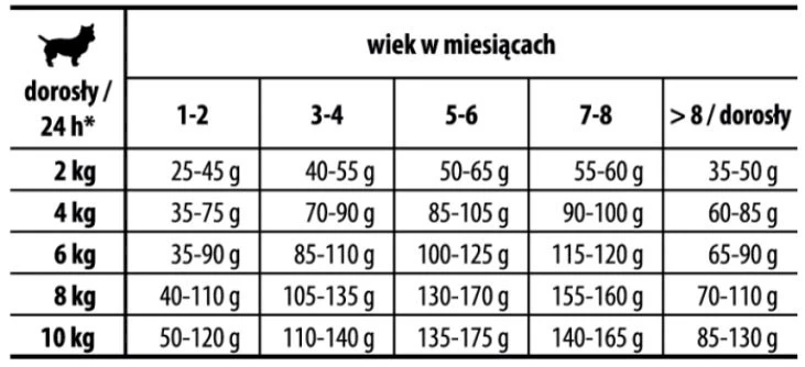- Wysoka wartość energetyczna (wysoki poziom białka i tłuszczu) - idealne rozwiązanie dla wszystkich energicznych i szybko rosnących pupili.