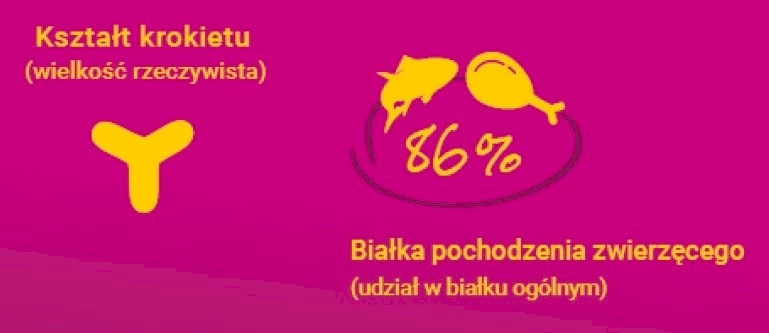 - Niska zawartość tłuszczu i wysoka zawartość białka stymuluje metabolizm kota i pomaga utrzymać odpowiednią wagę.