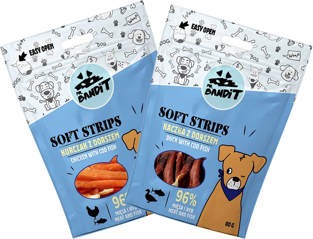 Cechy Mr.Bandit Soft Strips Duck with Cod Fish: |