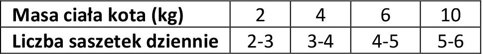 - Karma posiada właściwości sprzyjające powstawaniu moczu nienasyconego struwitem i właściwości zakwaszające mocz.
