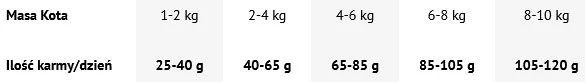 - karma bazuje na surowcach pochodzenia zwierzęcego charakteryzujących się wysoką zawartością̨ pełnowartościowego białka, o wysokiej zawartości wszystkich aminokwasów egzogennych.