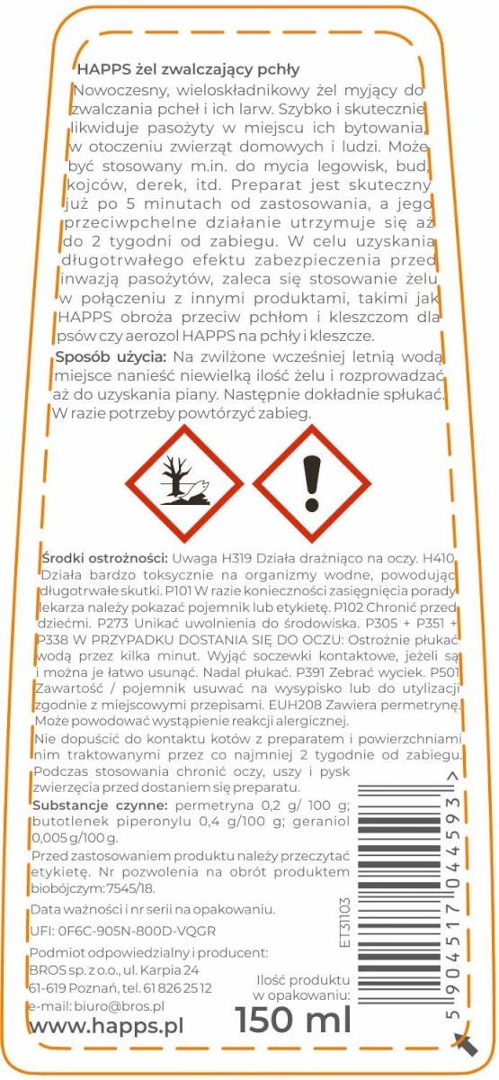 HAPPS Żel myjący zwalczający pchły u psa 150ml
