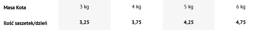- Dieta w pełni zaspokaja potrzeby żywieniowe kotów będących w trakcie terapii odchudzającej i przyczynia się do poprawy ich stanu zdrowia.