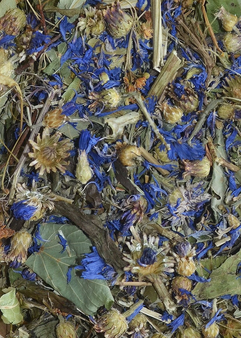 Skład: suszony podbiał, mięta, kwiat bławatka, kora brzozy, liść lipy, szałwia, babka lancetowata, melisa, pokrzywa.