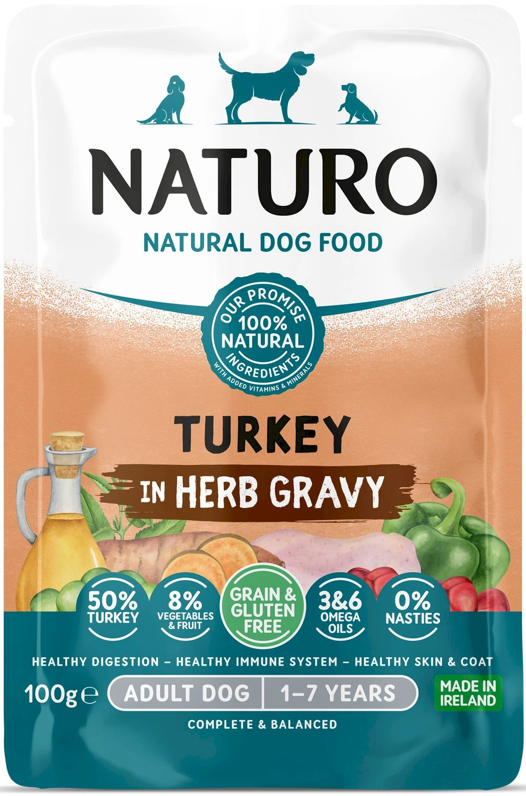 Cechy karmy NATURO Adult Dog Turkey in Herb Gravy: