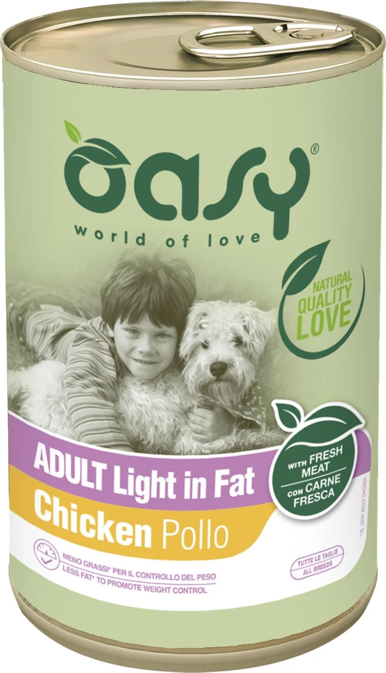 Cechy karmy w puszce OASY Lifestage Adult Light in fat Chicken: |