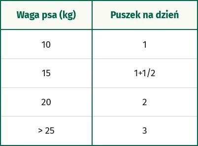 - Indywidualne zapotrzebowanie może zmieniać się w zależności od wieku i poziomu aktywności psa.