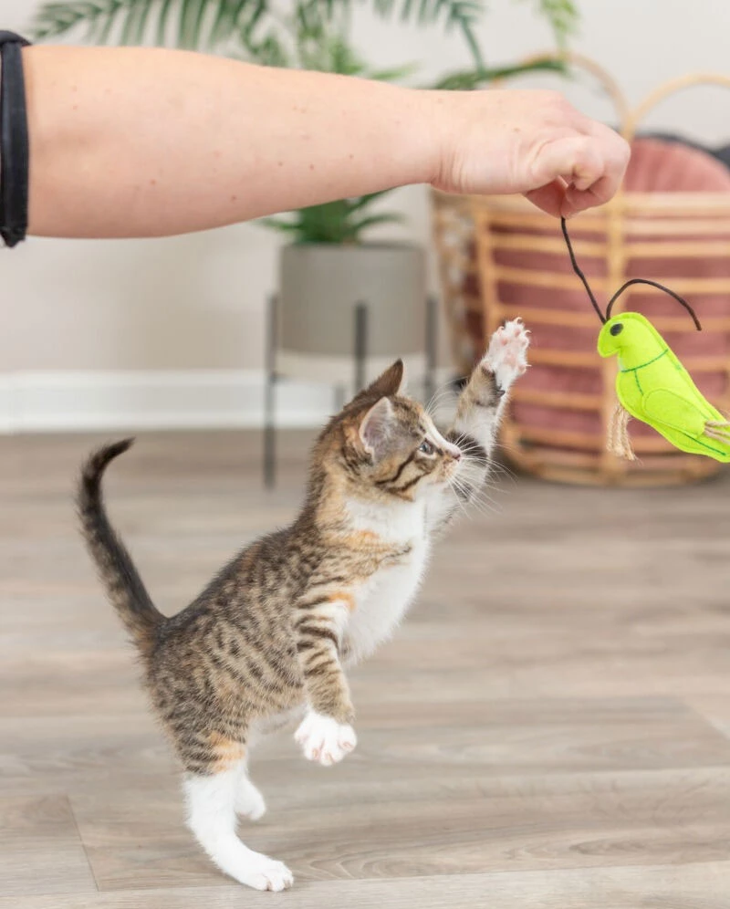 - Insekty z filcu do odkrywczej zabawy dla kotów.