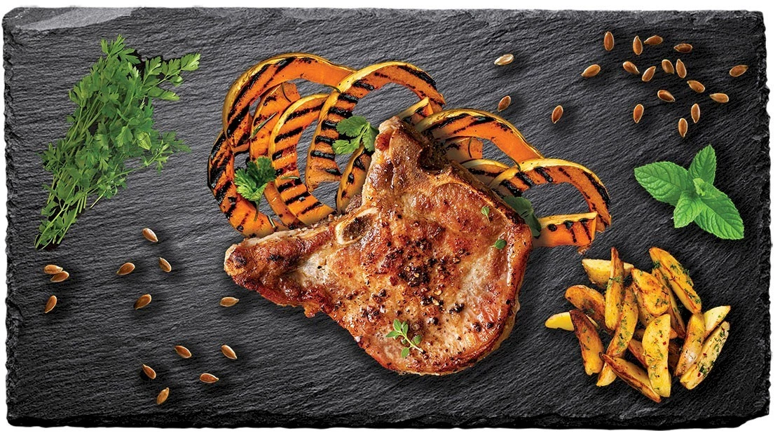 - 75% wieprzowiny, dyni, oleju z łososia, ziemniaków oraz ziół.