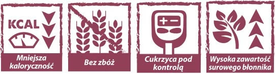 - Wyeliminowano zboża, aby uniknąć reakcji alergicznych oraz innych nietolerancji z nim związanych.