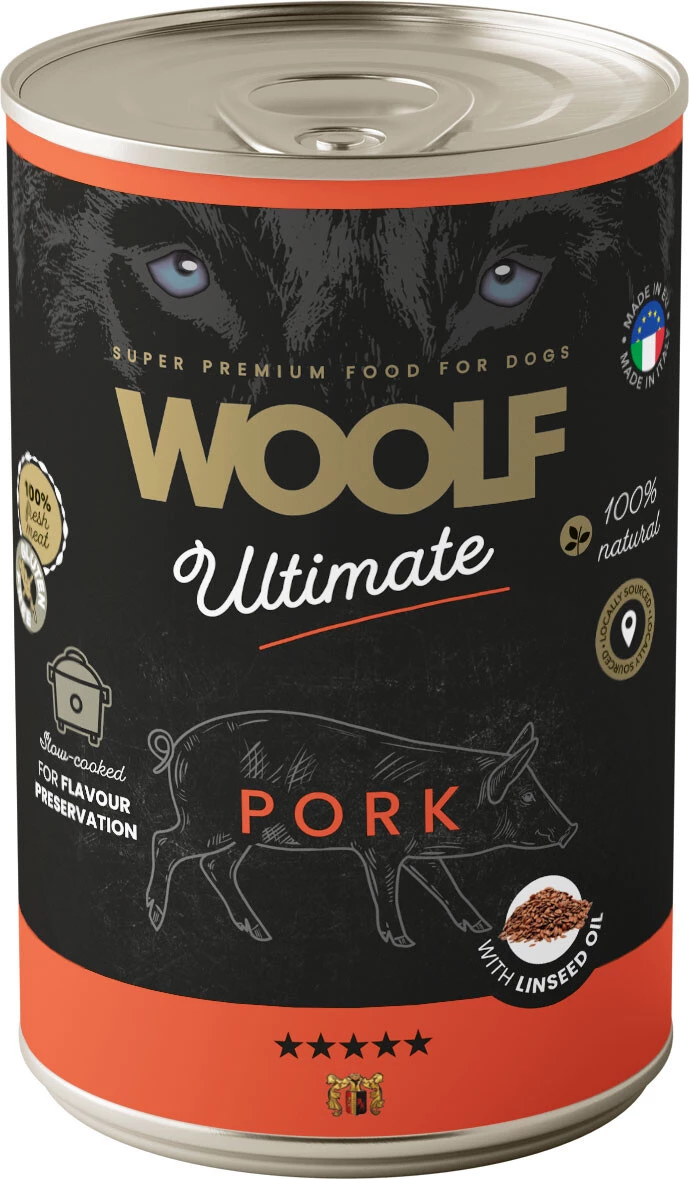WOOLF Ultimate Pork Wieprzowina Olej Lniany Puszka 400g