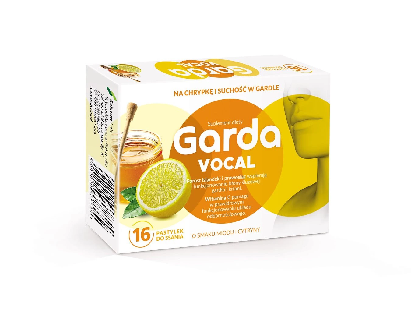 - Garda Vocal 16 pastylek do ssania o smaku miodu i cytryny to produkt w formie wygodnych pastylek do ssania. Opakowanie zawiera 16 pastylek o przyjemnym, harmonijnym połączeniu słodyczy miodu i orzeźwiającej cytryny.
