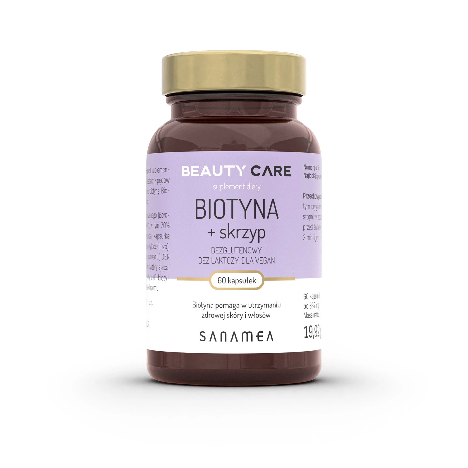 - Sanamea Biotyna + Skrzyp to suplement diety stworzony z myślą o osobach dbających o urodę. Zawiera ekstrakt z pędów bambusa, ziela skrzypu polnego oraz biotynę, która wspiera zachowanie zdrowej skóry i włosów.