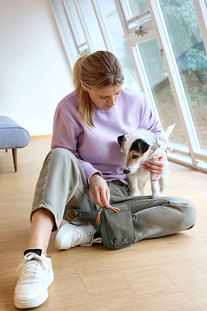 Torebka saszetka na smakołyki dla psa Greta od marki PALOPA idealnie sprawdzi się w szkole dla psów, podczas treningu samodzielności, jak również podczas codziennych spacerów z pupilem.