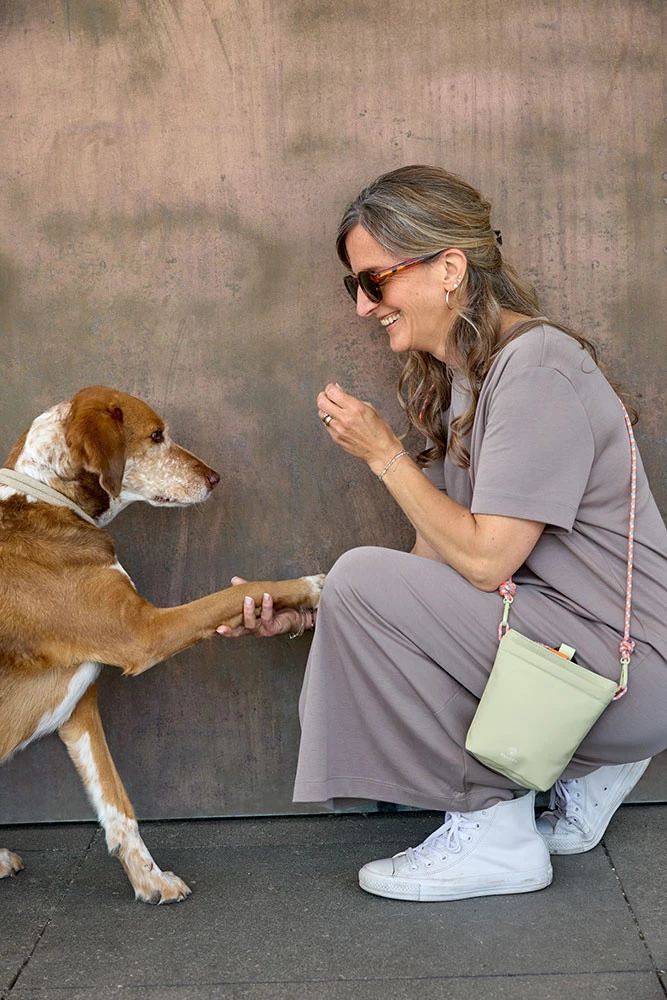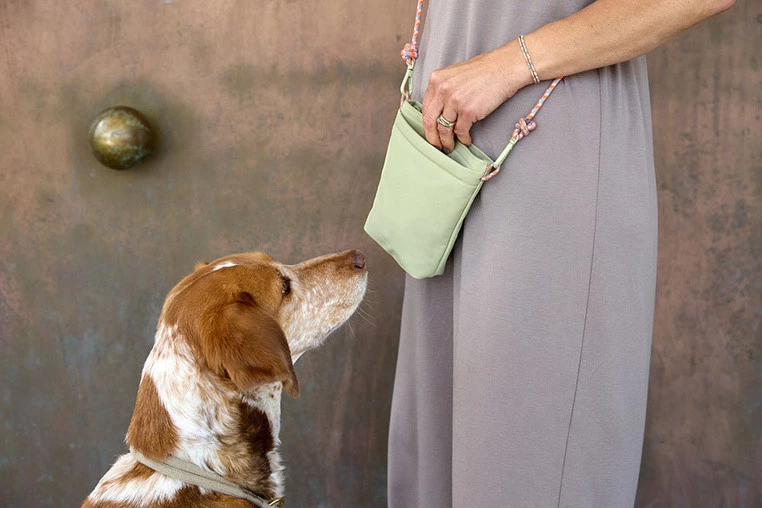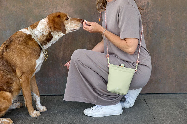 Stylowa torebka na smakołyki Karl od marki PALOPA to idealny wybór do szkoły dla psów, treningu samodzielności lub na codzienne spacery. Oferuje wystarczająco dużo miejsca na wszystko, co niezbędne podczas podróży z psem, a jej stonowane kolory pasują do każdej stylizacji.