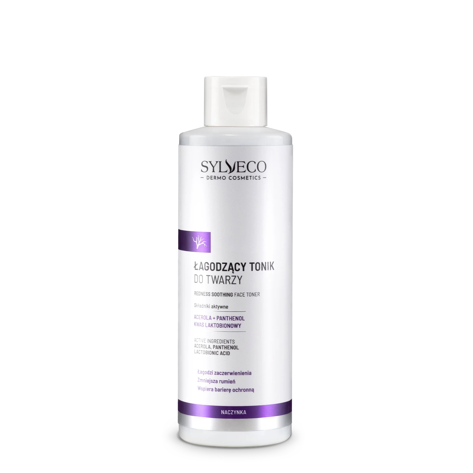 Łagodzący tonik do twarzy z linii SYLVECO DERMO to produkt stworzony dla osób walczących z niechcianym zaczerwienieniem, rumieniem, poszerzonymi naczynkami lub trądzikiem różowatym. Dzięki zawartości alantoiny i betainy działa kojąco, przynosząc ulgę wrażliwej i podrażnionej skórze.Ekstrakt z aceroli, bogaty w witaminę C, działa antyoksydacyjnie, zmniejszając widoczność zaczerwienień. Pantenol i niacynamid wspomagają odbudowę bariery ochronnej skóry, minimalizując podrażnienia i przyspieszając regenerację. Kwas laktobionowy usuwa martwe komórki skóry, sprzyjając regeneracji i odnowie naskórka. Głębokie nawilżenie, poprawę elastyczności i wygładzenie skóry zapewnia niskocząsteczkowy kwas hialuronowy. Produkt posiada delikatny zapach, oparty na kompozycji zapachowej bez alergenów.Aqua, Polysorbate 20, Niacinamide, Panthenol, Glycerin, Betaine, Lactobionic Acid, Allantoin, Gluconolactone, Lactic Acid, Sodium Hyaluronate, Malpighia Emarginata Fruit Extract, Benzyl Alcohol, Dehydroacetic Acid, Parfum.