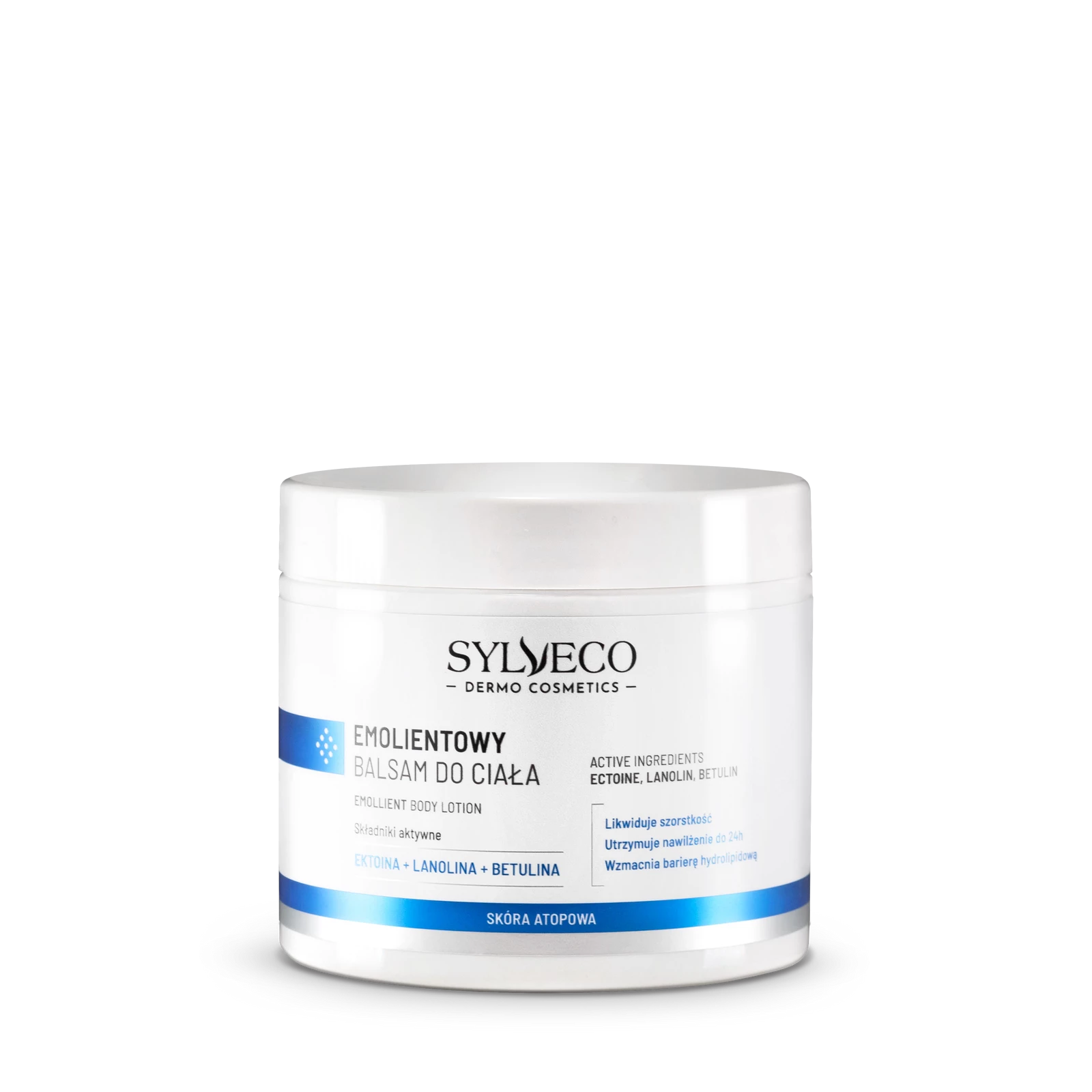 - Emolientowy balsam do ciała dla osób z suchą, odwodnioną skórą, skłonną do podrażnień i zaczerwienień. Balsam zapewnia intensywną i długotrwałą ochronę przed przesuszeniem, przywraca skórze gładkość i elastyczność.