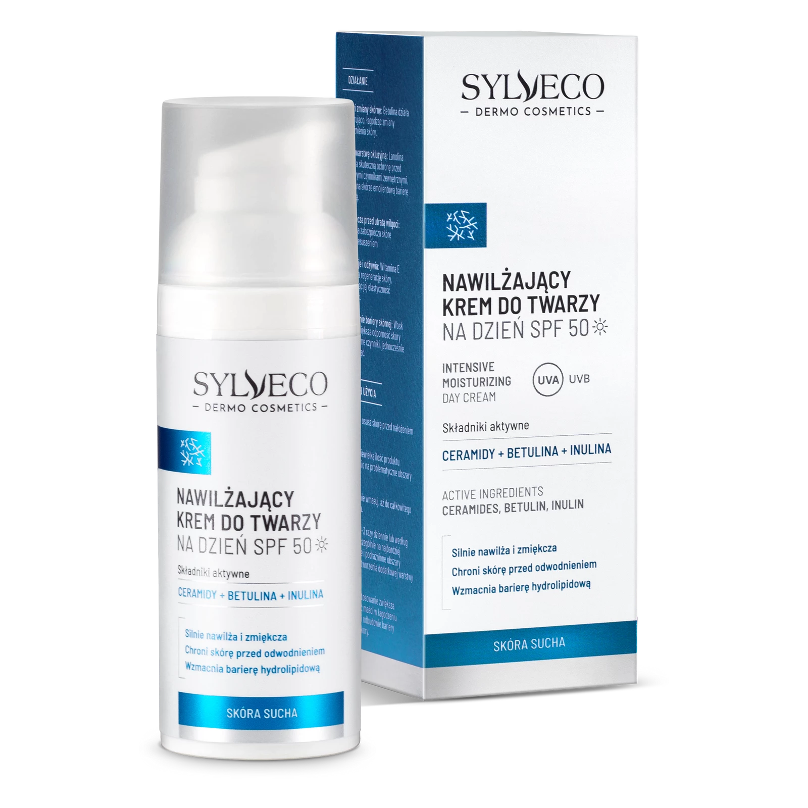 Nawilżający krem do codziennej pielęgnacji cery suchej, odwodnionej, wrażliwej, delikatnej, z zaburzoną barierą hydrolipidową. Dzięki zawartości oleju jojoba i masła Shea krem zmiękcza skórę, zapobiegając utracie wody. Ekstrakt z aloesu przyspiesza regenerację i utrzymuje wilgoć. Skwalan i witamina E zapewniają wygładzenie i ujędrnienie skóry. Drogocenne ceramidy odbudowują warstwę lipidową, ograniczając negatywny wpływ czynników zewnętrznych. Betulina i inulina łagodzą zaczerwienienia, przywracając skórze komfort. Nowoczesne filtry chemiczne chronią skórę przed promieniowaniem UV. Produkt posiada delikatny, przyjemny zapach.Aqua, Dicaprylyl Carbonate, Diethylamino Hydroxybenzoyl Hexyl Benzoate, Bis-Ethylhexyloxyphenol Methoxyphenyl Triazine, Glycerin, Caprylic/Capric Triglyceride, Ethylhexyl Triazone, Cetearyl Olivate, Sorbitan Olivate, Cetearyl Alcohol, Squalane, Inulin, Simmondsia Chinensis Seed Oil, Lanolin, Tocopheryl Acetate, Butyrospermum Parkii Butter, Prunus Armeniaca Kernel Oil, Lactobacillus/Centella Asiatica Extract Ferment, Gluconolactone, Calcium Gluconate, Lactic Acid, Acetic Acid, Protocatechic Acid, Caffeic Acid, Gallic Acid, Reuterin, Aloe Barbadensis Leaf Extract, Trihydroxypalmitamidohydroxypropyl Myristyl Ether, Ceramide NP, Rosa Canina Seed Oil, Betulin, Xanthan Gum, Sodium Benzoate, Benzyl Alcohol, Dehydroacetic Acid, Parfum, Hexyl Cinnamal