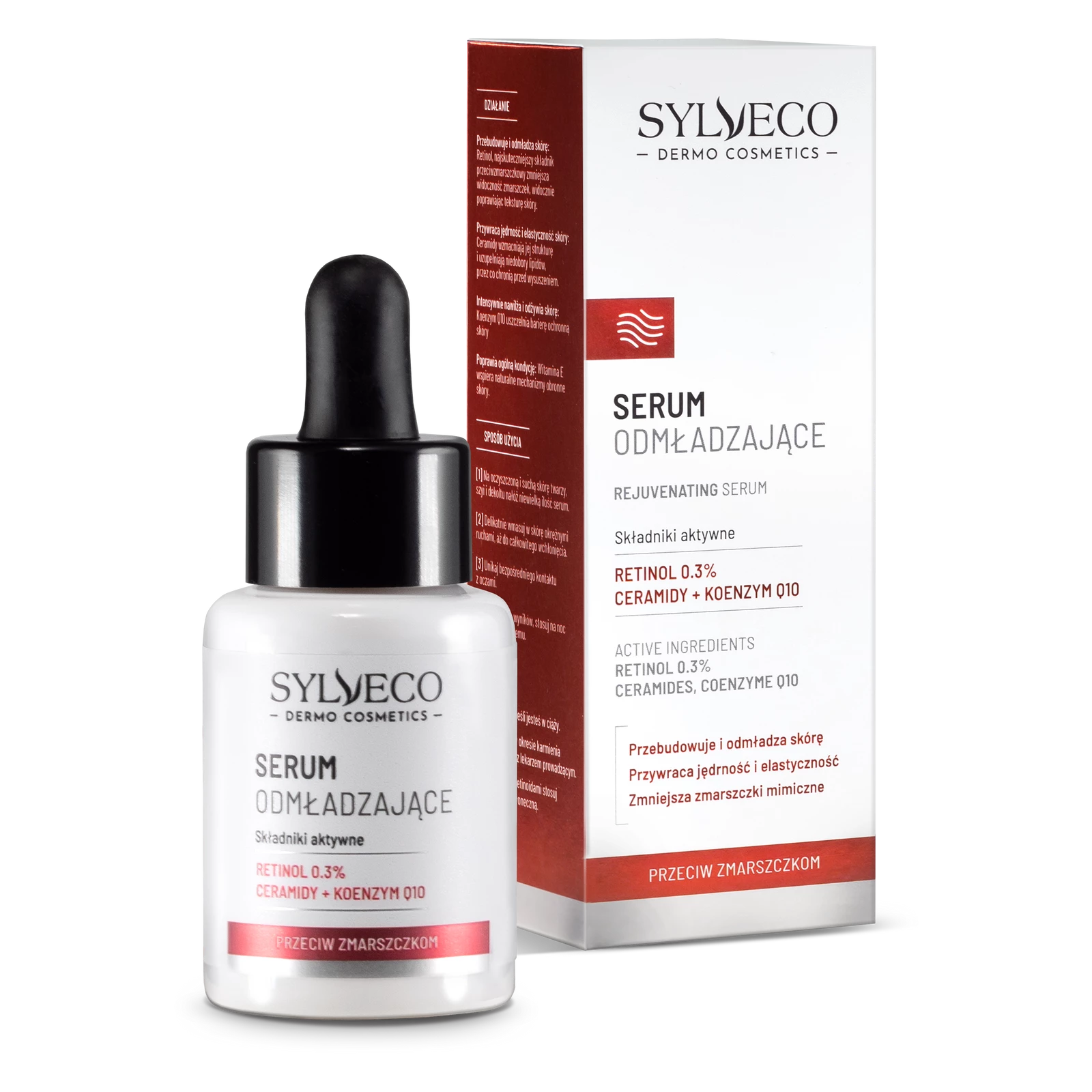 Odmładzające serum do twarzy powstało z myślą o osobach walczących z widocznymi efektami starzenia, ze zmarszczkami mimicznymi, utratą jędrności i gęstości skóry. Dzięki zastosowaniu najskuteczniejszego składnika przeciwzmarszczkowego, retinolu (0,3%), serum zmniejsza widoczność zmarszczek, widocznie poprawiając teksturę skóry. Koenzym Q10 chroni skórę przed starzeniem, wygładzając skórę. Ceramidy wzmacniają jej strukturę i uzupełniają niedobory lipidów, przez co chronią przed wysuszeniem. Naturalne mechanizmy obronne skóry wspiera witamina E, która działa antyoksydacyjnie. Produkt posiada delikatny zapach (kompozycja zapachowa).Caprylic/Capric Triglyceride, Coco-Caprylate, Squalane, Isopropyl Myristate, Tocopheryl Acetate, Argania Spinosa Kernel Oil, Simmondsia Chinensis Seed Oil, Retinol, Polysorbate 20, Ubiquinone, Trihydroxypalmitamidohydroxypropyl Myristyl Ether, Ceramide NP, Lanolin, Parfum, Hexyl Cinnamal.
