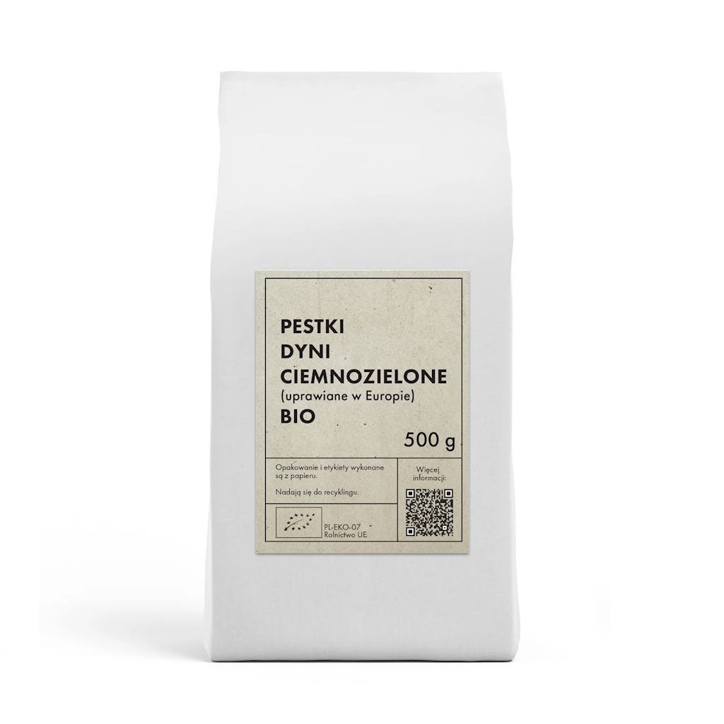 - Ekologiczne pestki dyni ciemnozielone 100 %.