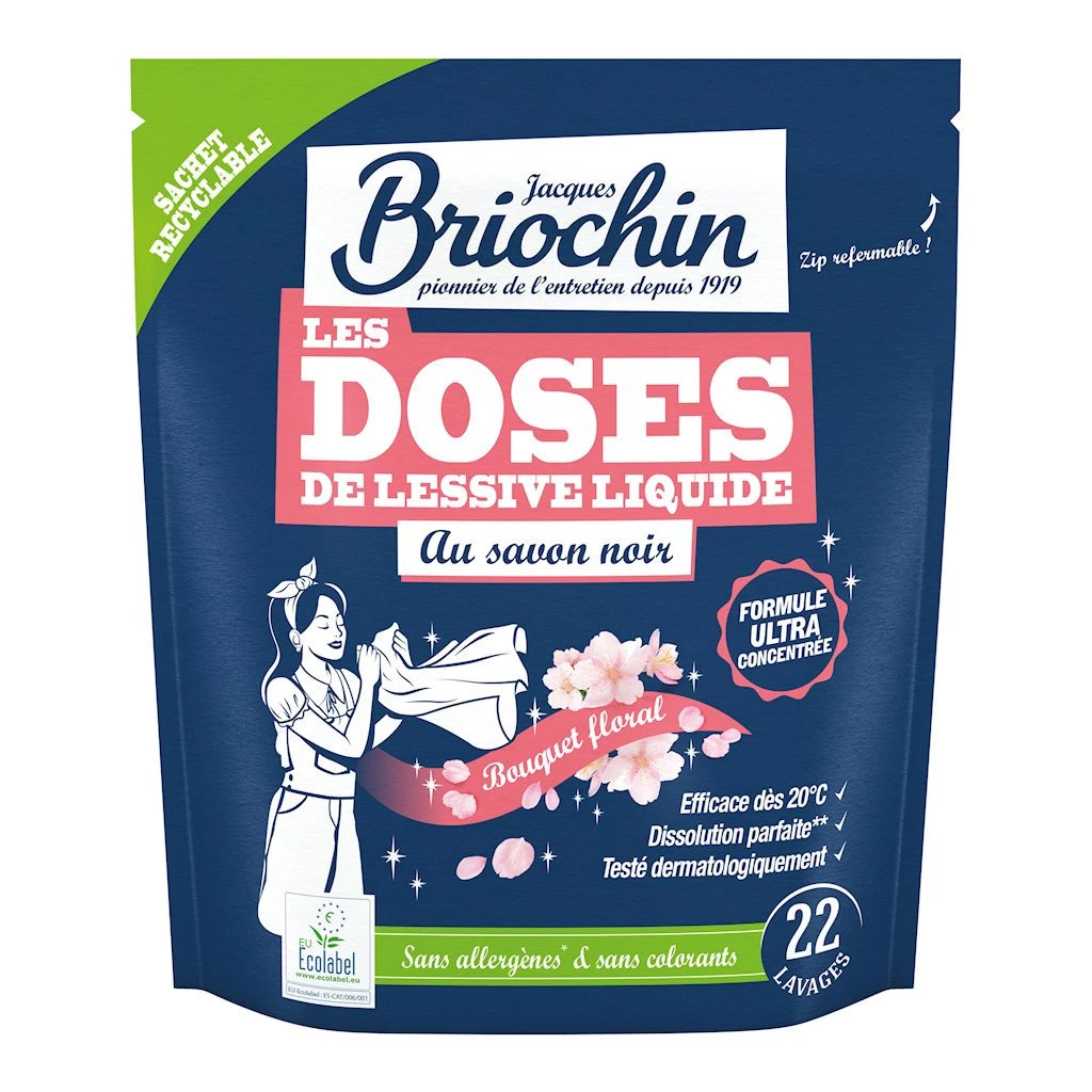 Kapsułki do prania Briochin na bazie szarego mydła o zapachu kwiatów to nowoczesne i wygodne rozwiązanie do codziennego prania. Skoncentrowana formuła łączy moc szarego mydła z delikatnym, kwiatowym aromatem, zapewniając doskonałe rezultaty prania nawet w niskich temperaturach.