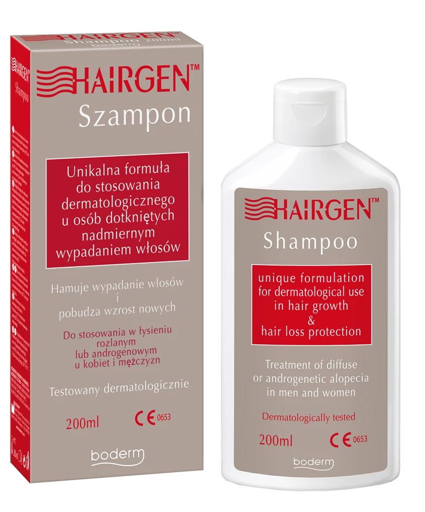 - Hairgen Szampon do stosowania u osób dotkniętych łysieniem rozlanym lub androgenowym, przeznaczony dla kobiet i mężczyzn.