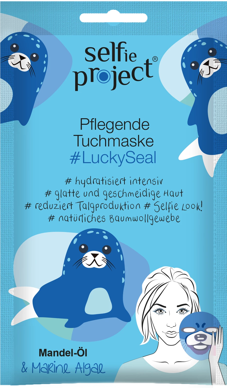 3 x Selfie Project, Maska Nawilżająca na Tkaninie #LuckySeal, 15 ml.Cena: 6,99 zł / szt.