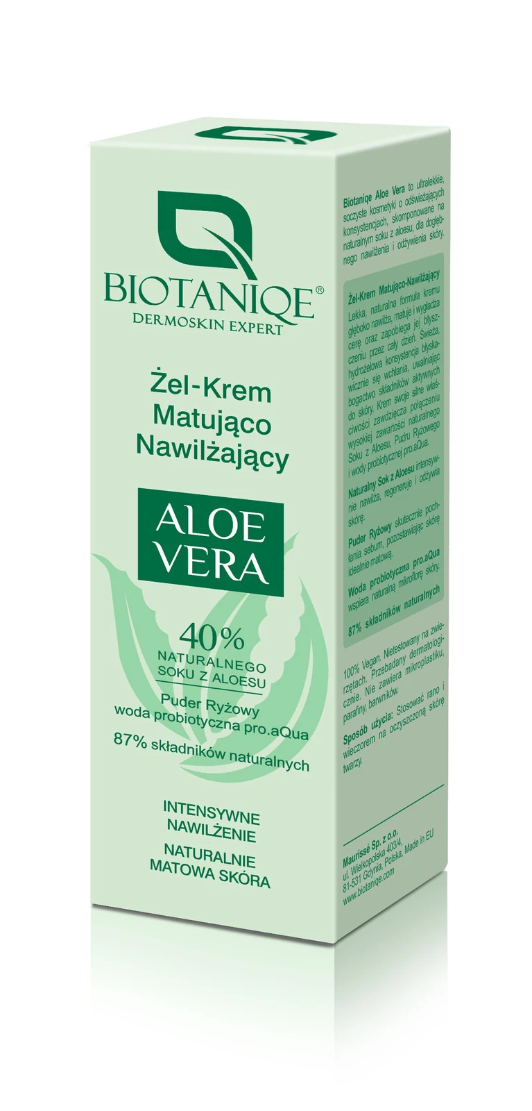 40% Naturalnego Soku z Aloesu intensywnie nawilża, regeneruje i odżywia skórę.