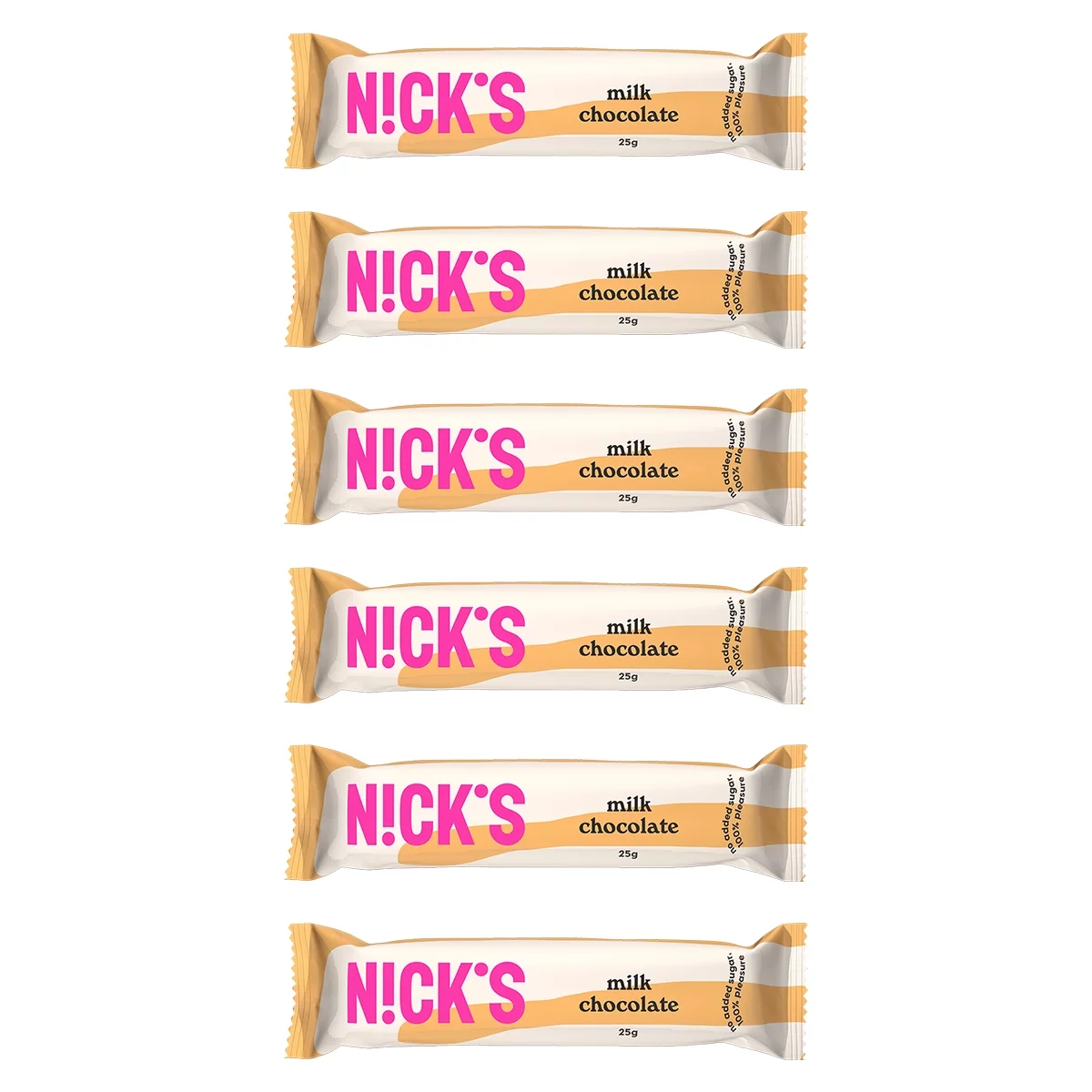 Nick's Milk Chocolate – Baton mleczny bez cukru, 25 g - zestaw 6 sztuk