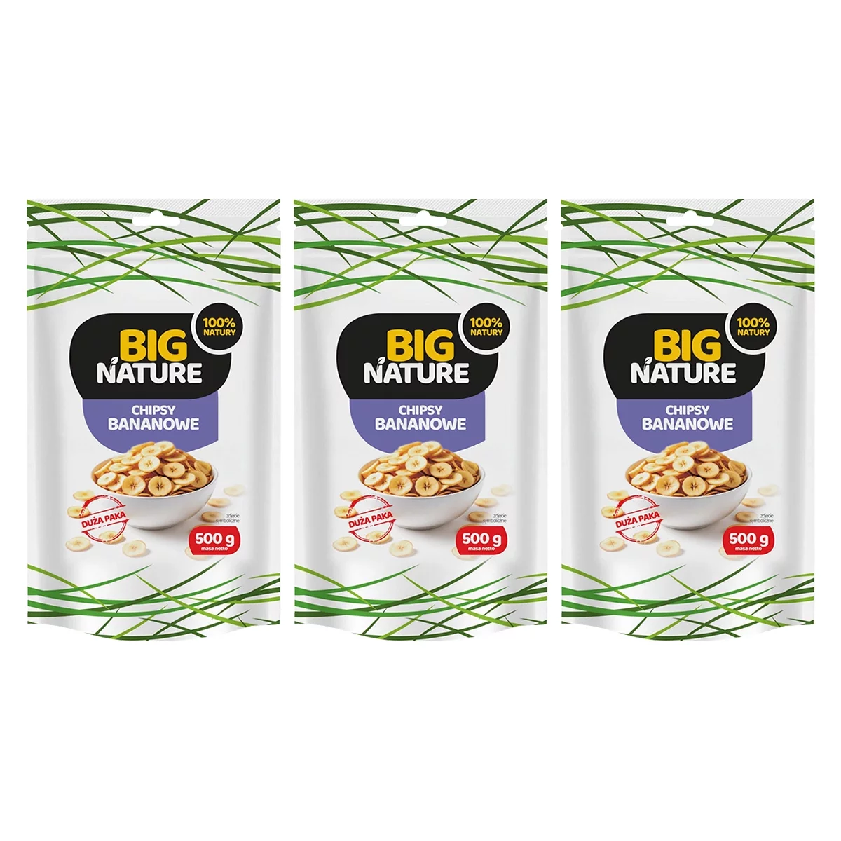 ✅ BIG NATURE Chipsy bananowe 500g – naturalna, chrupiąca przekąska - zestaw 3 sztuki
