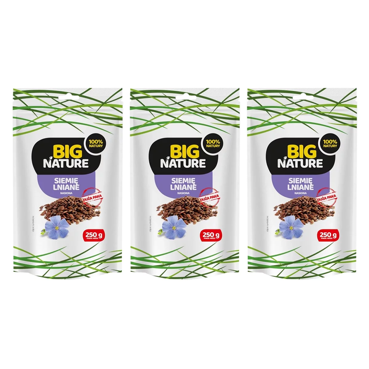 Big Nature Siemię Lniane Ziarno Duża Paka 250 g - zestaw 3 sztuki