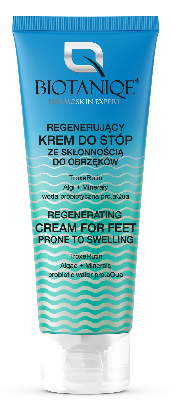 Regenerujący Krem do Stóp ze Skłonnością do Obrzęków niesie natychmiastową ulgę po całym dniu aktywności. Lekka, hydrożelowa formuła błyskawicznie nawilża, dając przyjemne uczucie kojącego chłodu i odprężenia. Doskonale działa przed wielkim wyjściem, po kąpieli słonecznej czy zajęciach fitness – wspomaga regenerację naskórka. TroxeRutin to Bioflawonoid, który przywraca komfort i zmniejsza uczucie nieprzyjemnego napięcia skóry. Wzmacnia, łagodzi i koi. Algi i Minerały regenerują i dotleniają skórę. Woda probiotyczna pro.aQua wspiera naturalny mikrobiom skóry. 100% wegańska formuła. 91% składników pochodzenia naturalnego. Aqua, Glycerin, MethylpropanediolPEG-7 Glyceryl Cocoate, Butyrospermum Parkii Butter, Glyceryl Stearate, Stearic Acid, Cetyl Alcohol, Dimethicone, PEG-100 Stearate, Undaria Pinnatifida Extract, Troxerutin, Zinc Gluconate, Copper Gluconate, Magnesium Aspartate, Lactobacillus Ferment Lysate, Leuconostoc/Radish Root Ferment Filtrate, Pentylene Glycol, Palmitic Acid, Ethylhexylglycerin, Sodium Metabisulfite, Sodium Polyacrylate, Mica, Phenoxyethanol, Parfum, CI 77891, CI 77288