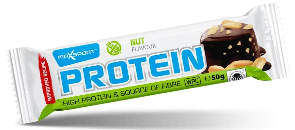 BATON PROTEINOWY Z ORZESZKAMI ZIEMNYMI W KAKAOWEJ POLEWIE BEZGLUTENOWY 50 g - MAXSPORT