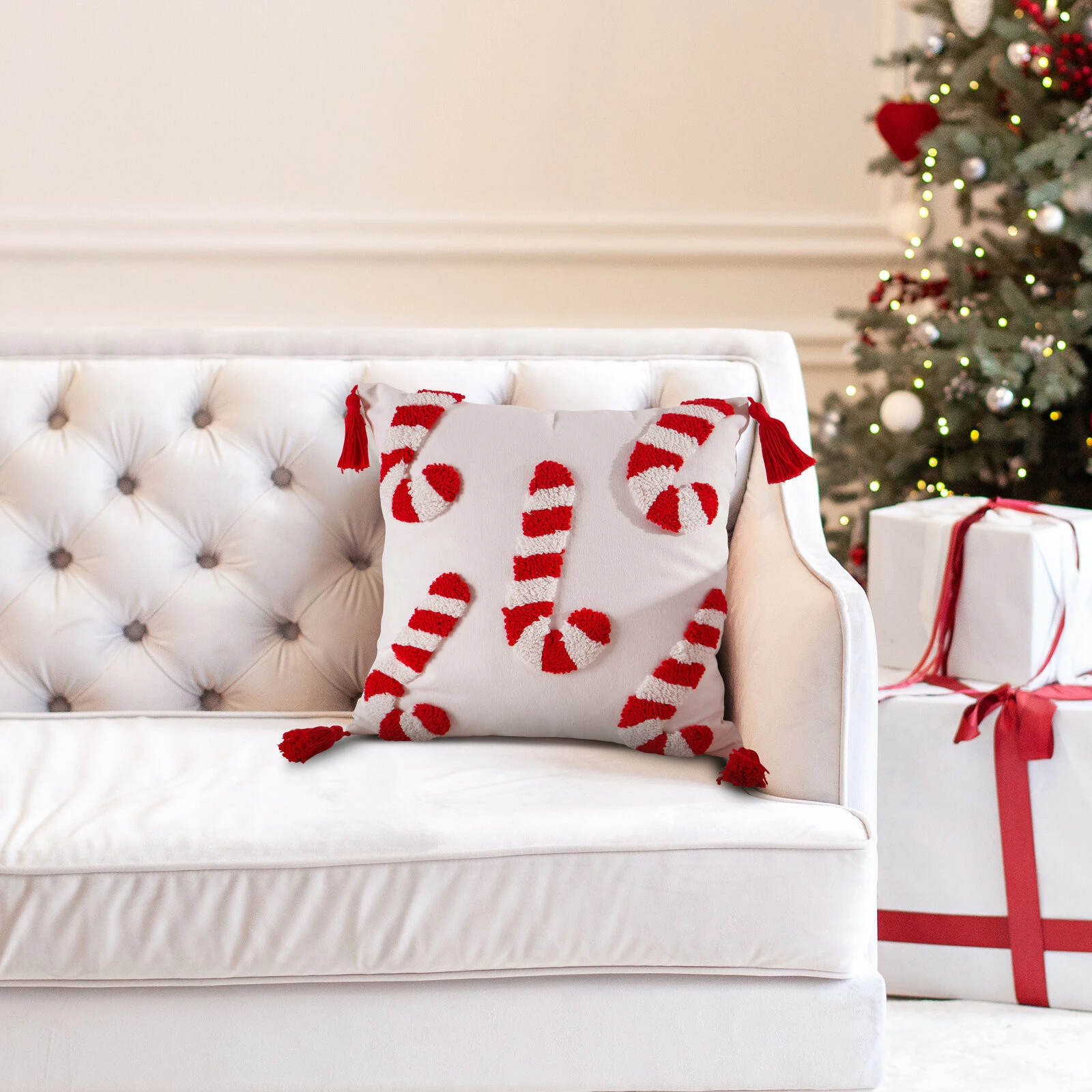 Świąteczna poszewka dekoracyjna z aplikacją i pomponami szerokość: 45 cm, długość: 45 cm, kolor: biały