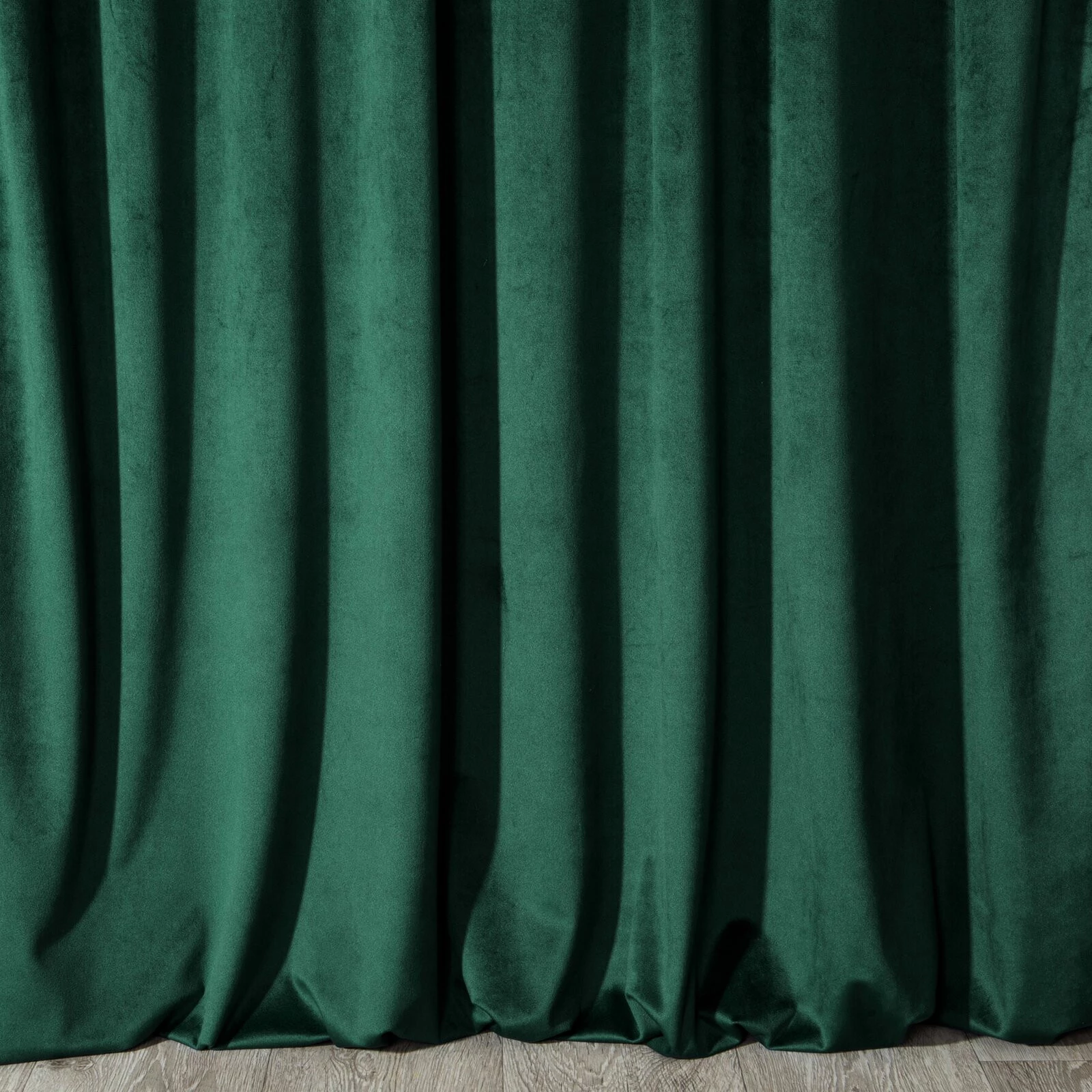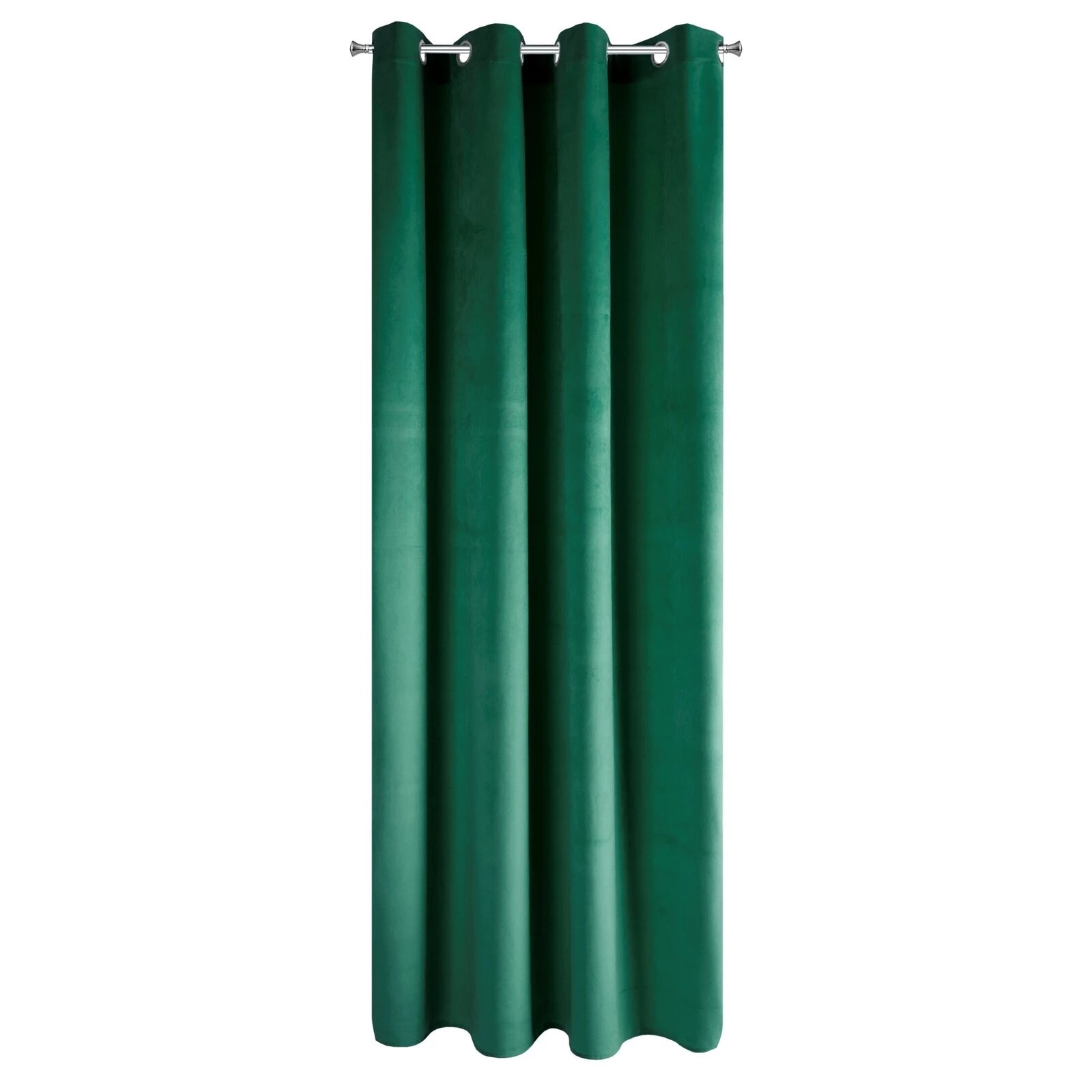 Miękka zasłona z welwetu o matowym wykończeniu. Mięsista tkanina o średnich właściwościach zaciemniających nadaje wnętrzu eleganckiego charakteru. ZASŁONA GOTOWA MELANIE 140 X 250 CM BUTELKOWY ZIELONY100% POLIESTER