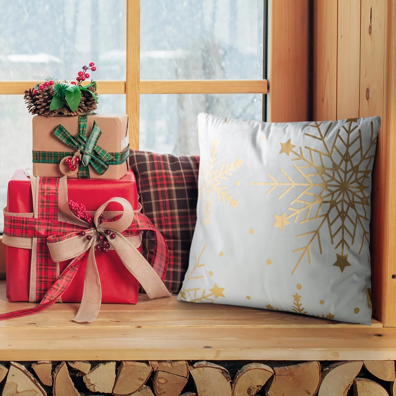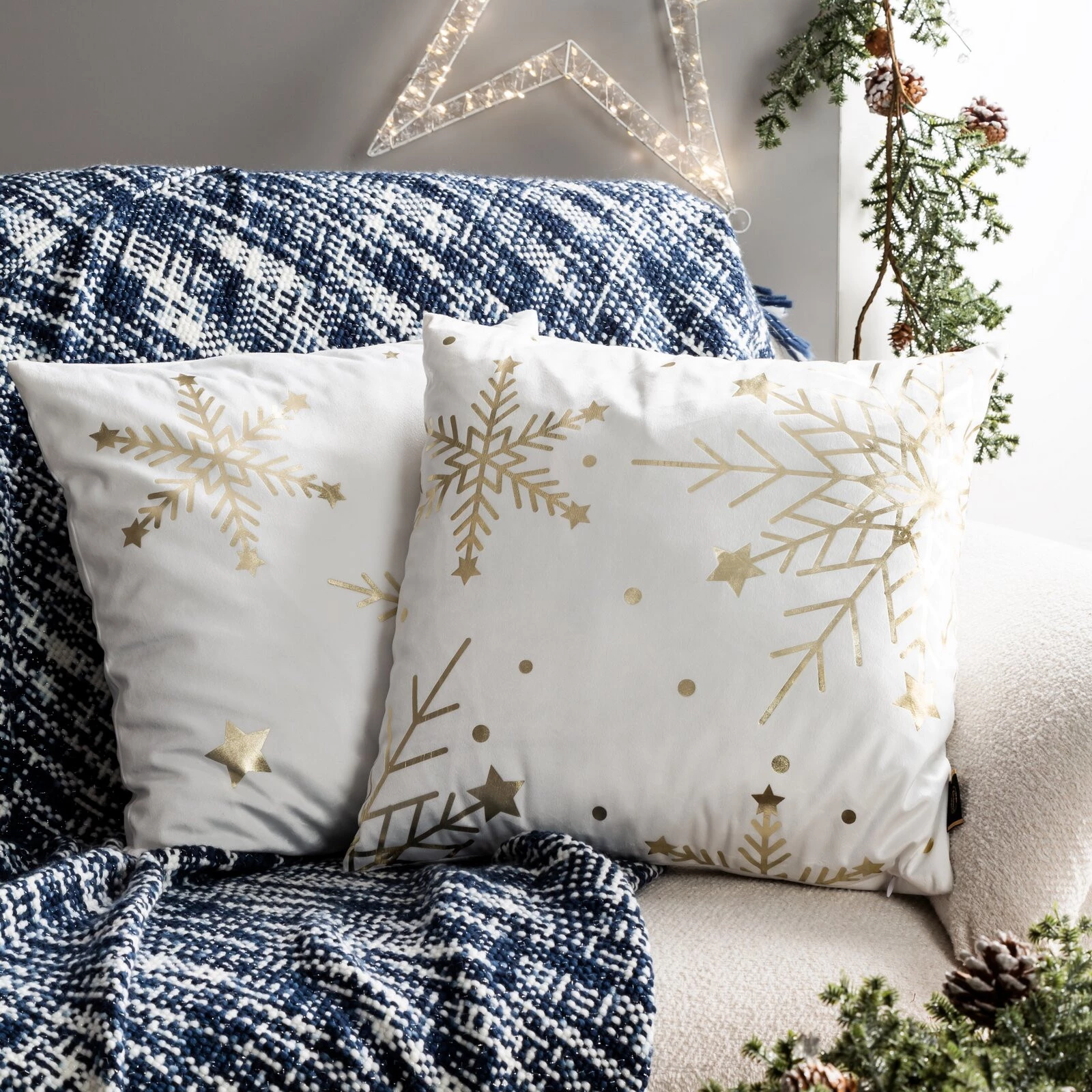 świąteczna poszewka welwetowa z ozdobnym nadrukiem foliowym szerokość: 45 cm, długość: 45 cm, kolor: biały