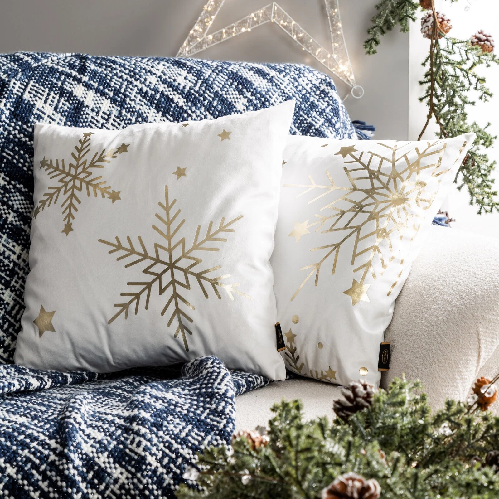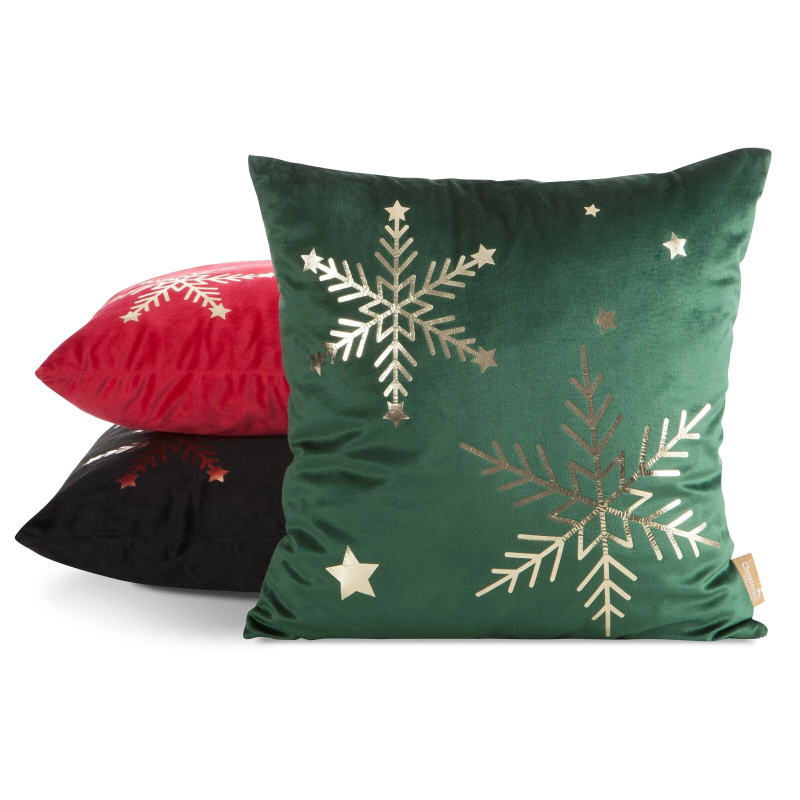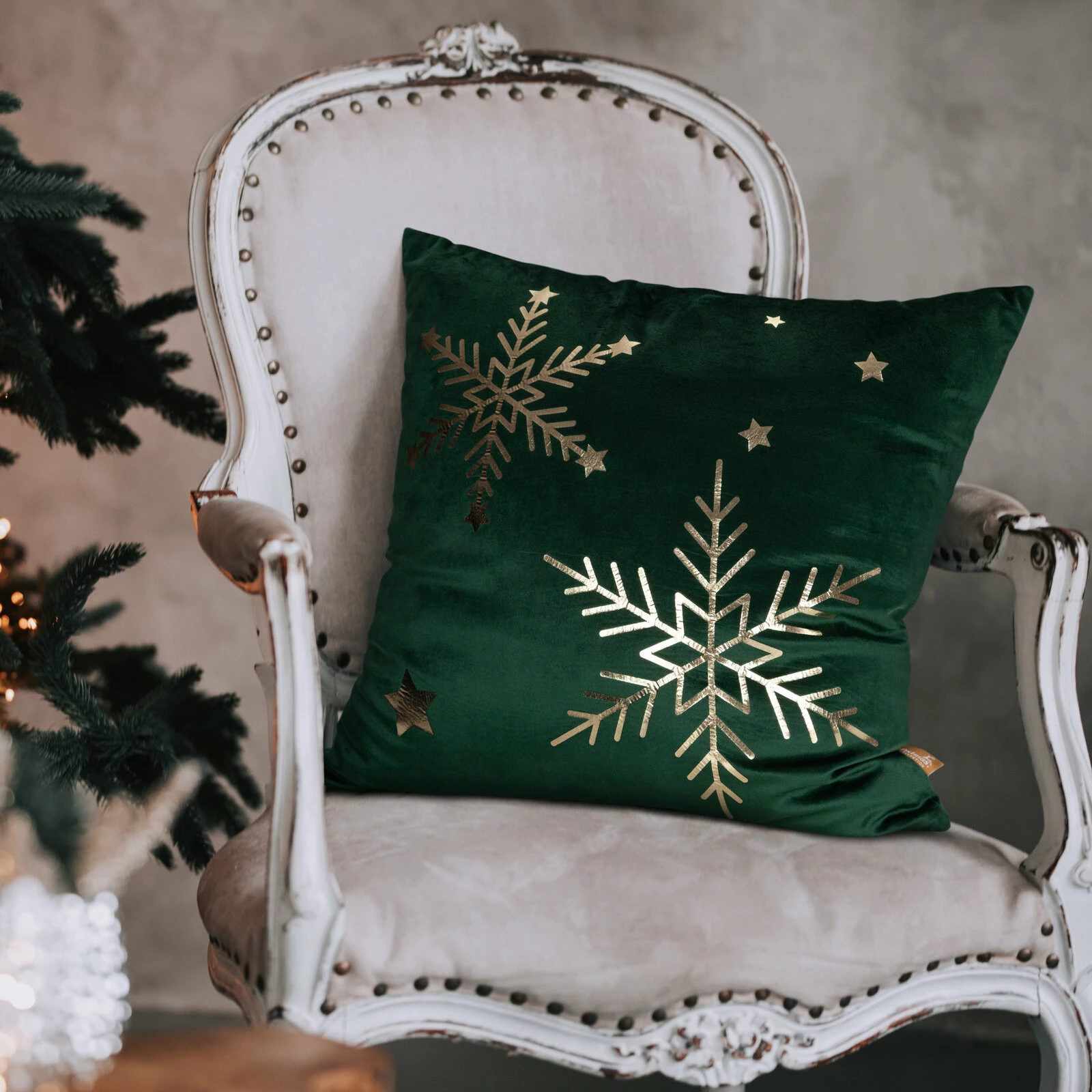 świąteczna poszewka welwetowa z ozdobnym nadrukiem foliowym szerokość: 45 cm, długość: 45 cm, kolor: ciemnozielony