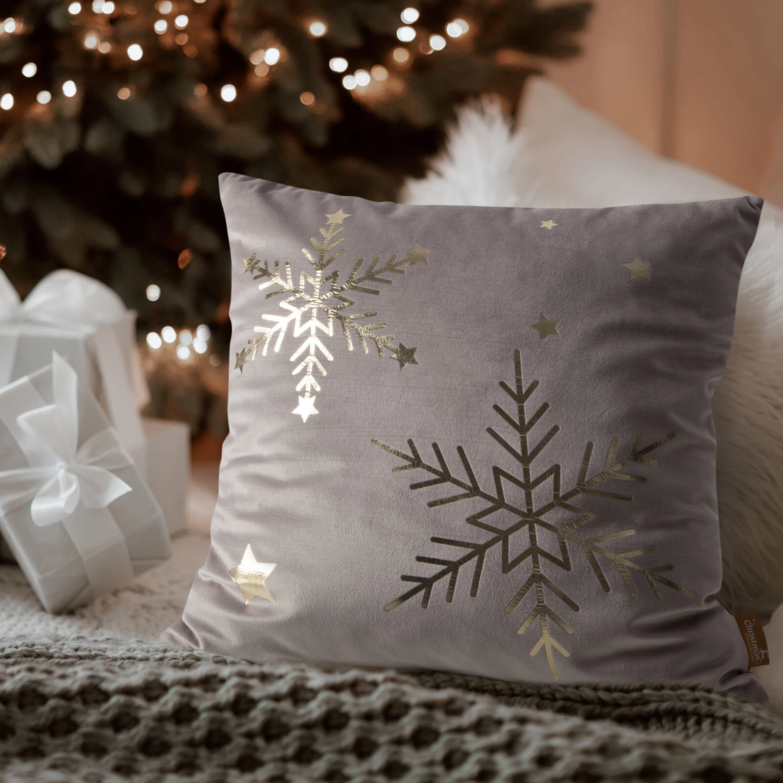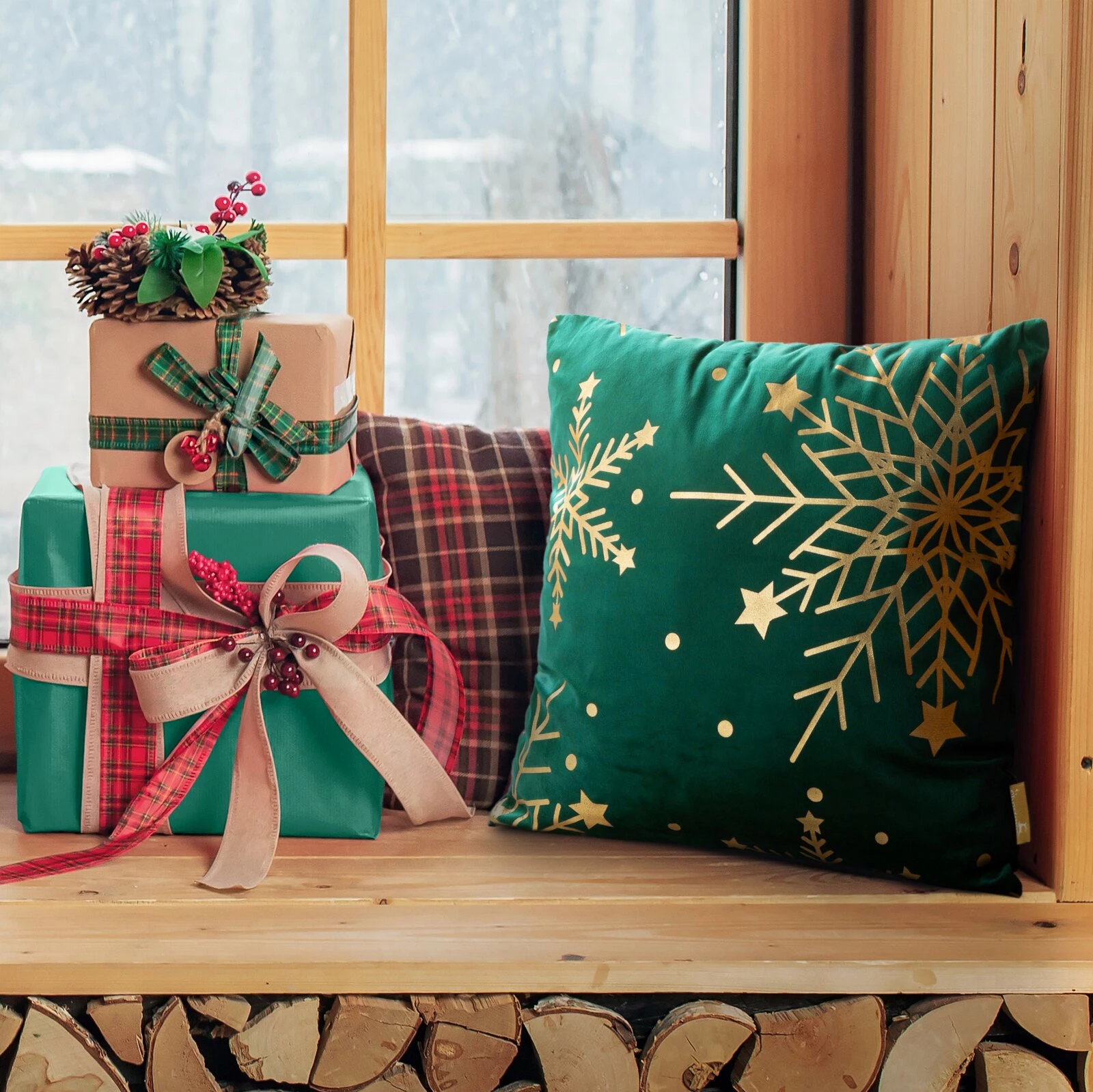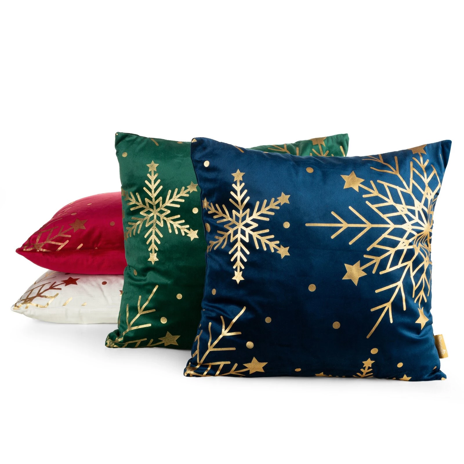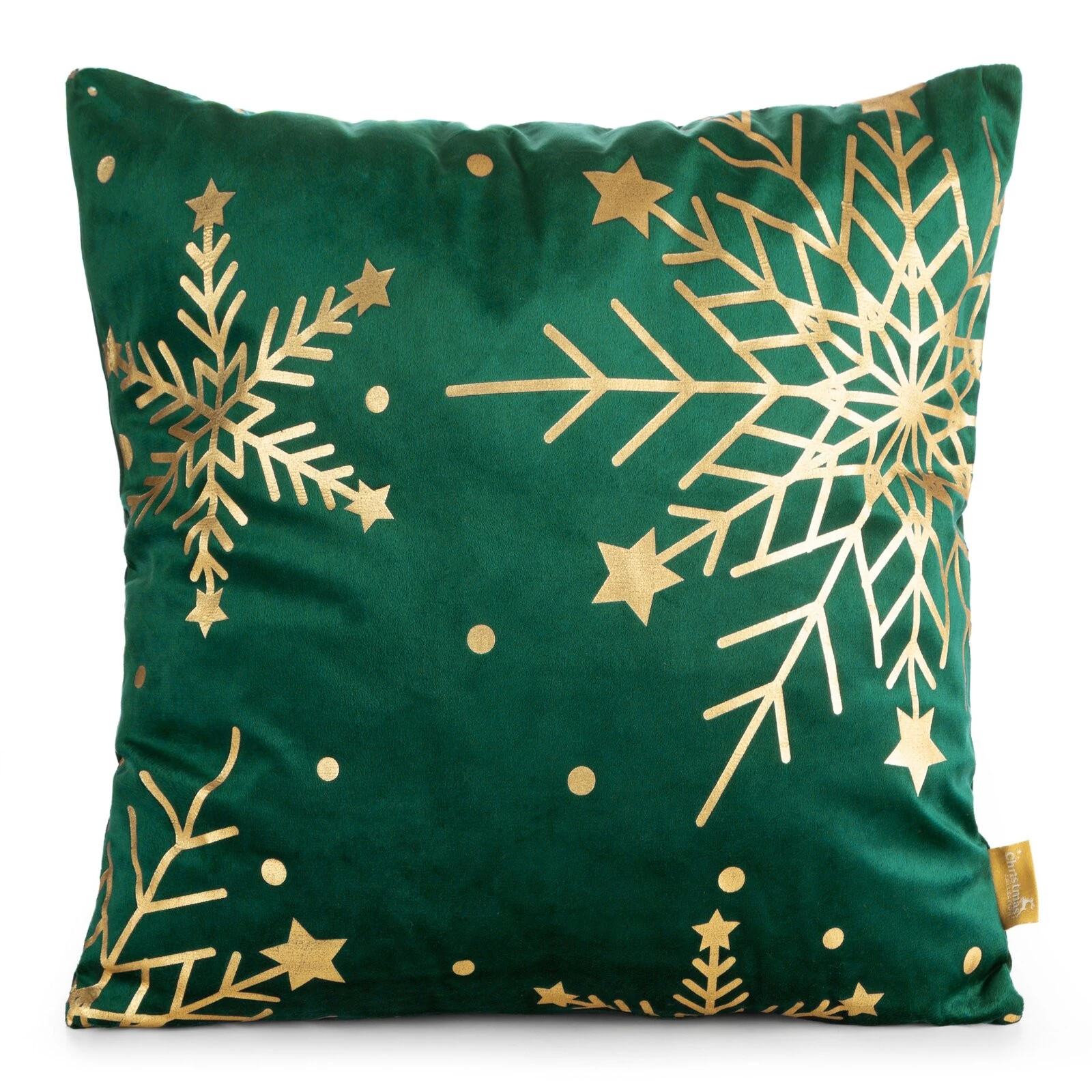 świąteczna poszewka welwetowa z ozdobnym nadrukiem foliowym szerokość: 45 cm, długość: 45 cm, kolor: ciemnozielony
