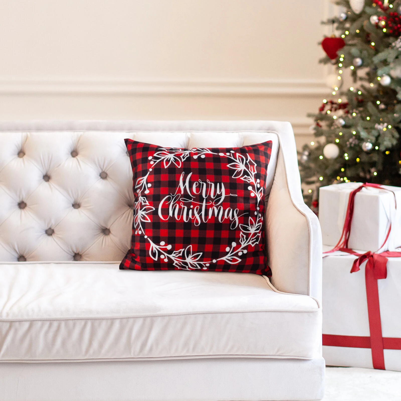 Welwetowa poszewka dekoracyjna z ozdobnym światecznym nadrukiem szerokość: 45 cm, długość: 45 cm, kolor: czerwony