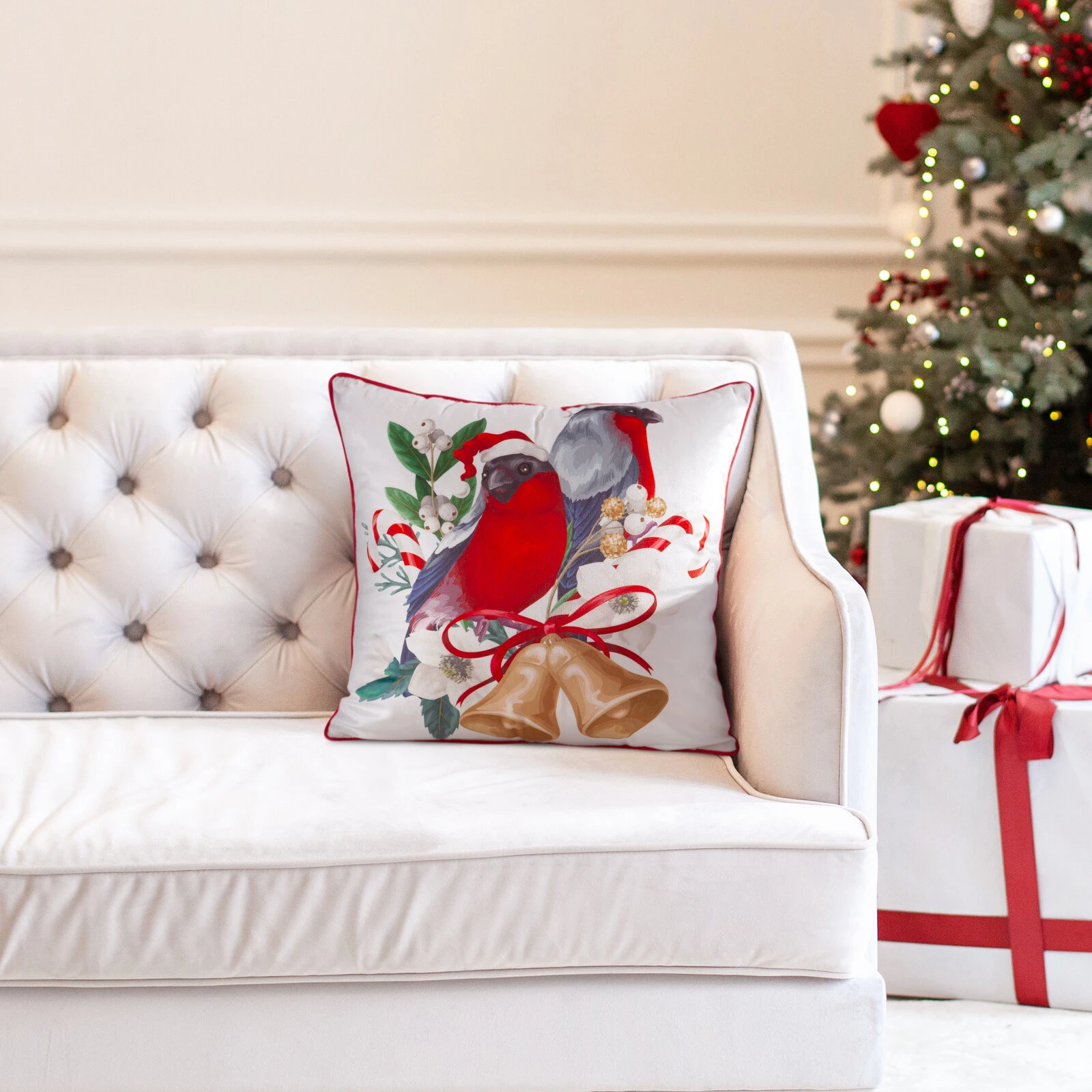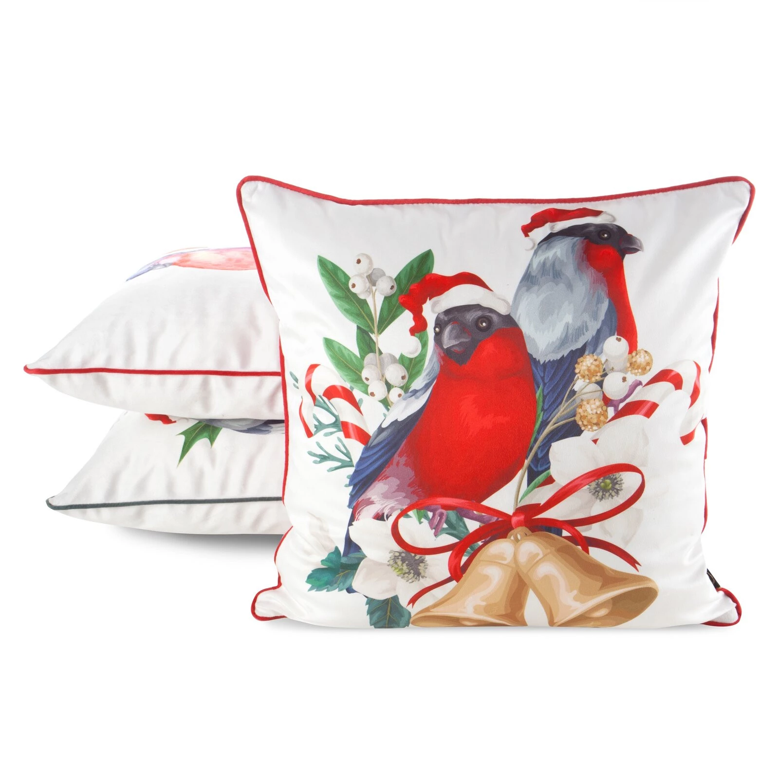 Welwetowa poszewka świąteczna z ozdobnym nadrukiem i lamówką szerokość: 45 cm, długość: 45 cm, kolor: biały