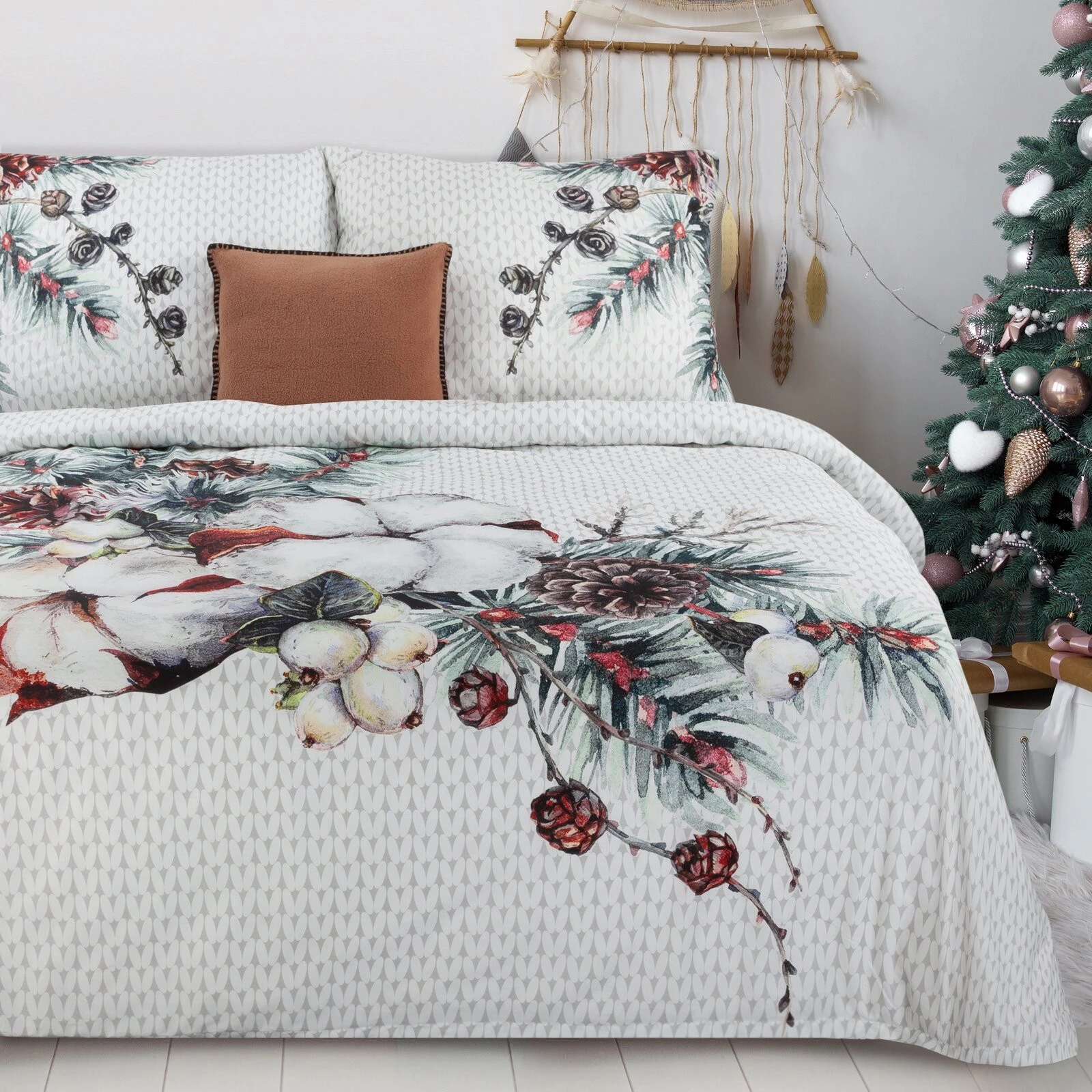 Komplet pościeli z satyny bawełnianej z panelowym nadrukiem szerokość: 160 cm, długość: 200 cm, kolor: białySATYNA, 100% BAWEŁNA